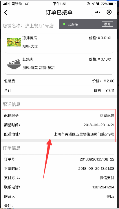 如果点单时没有出现“店铺距离” 需要检查地址是否标注了