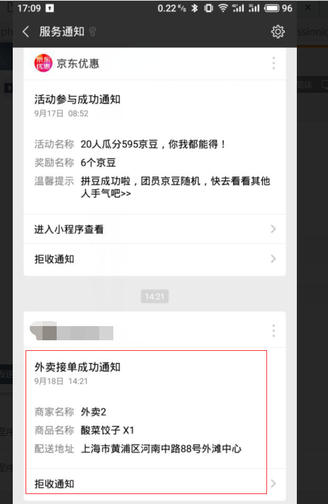 二.小程序新增外卖接单成功通知模板(营销版)